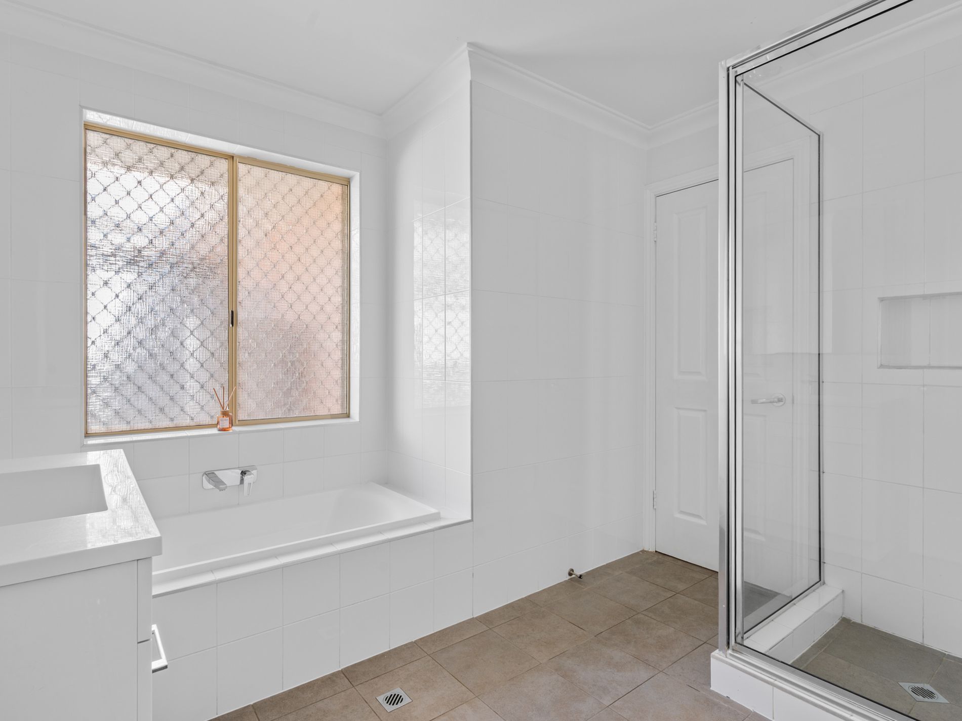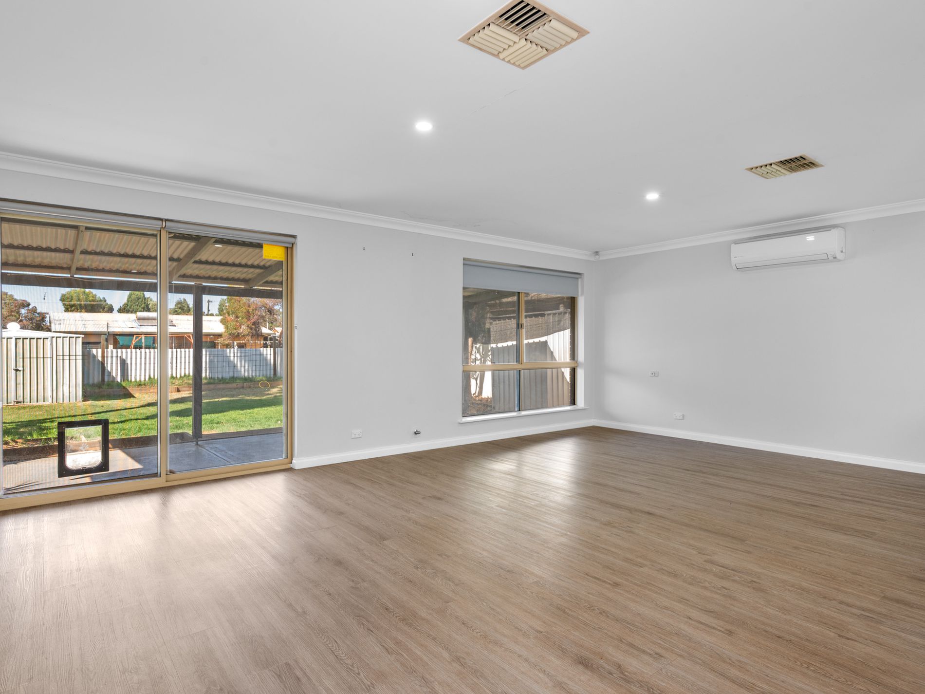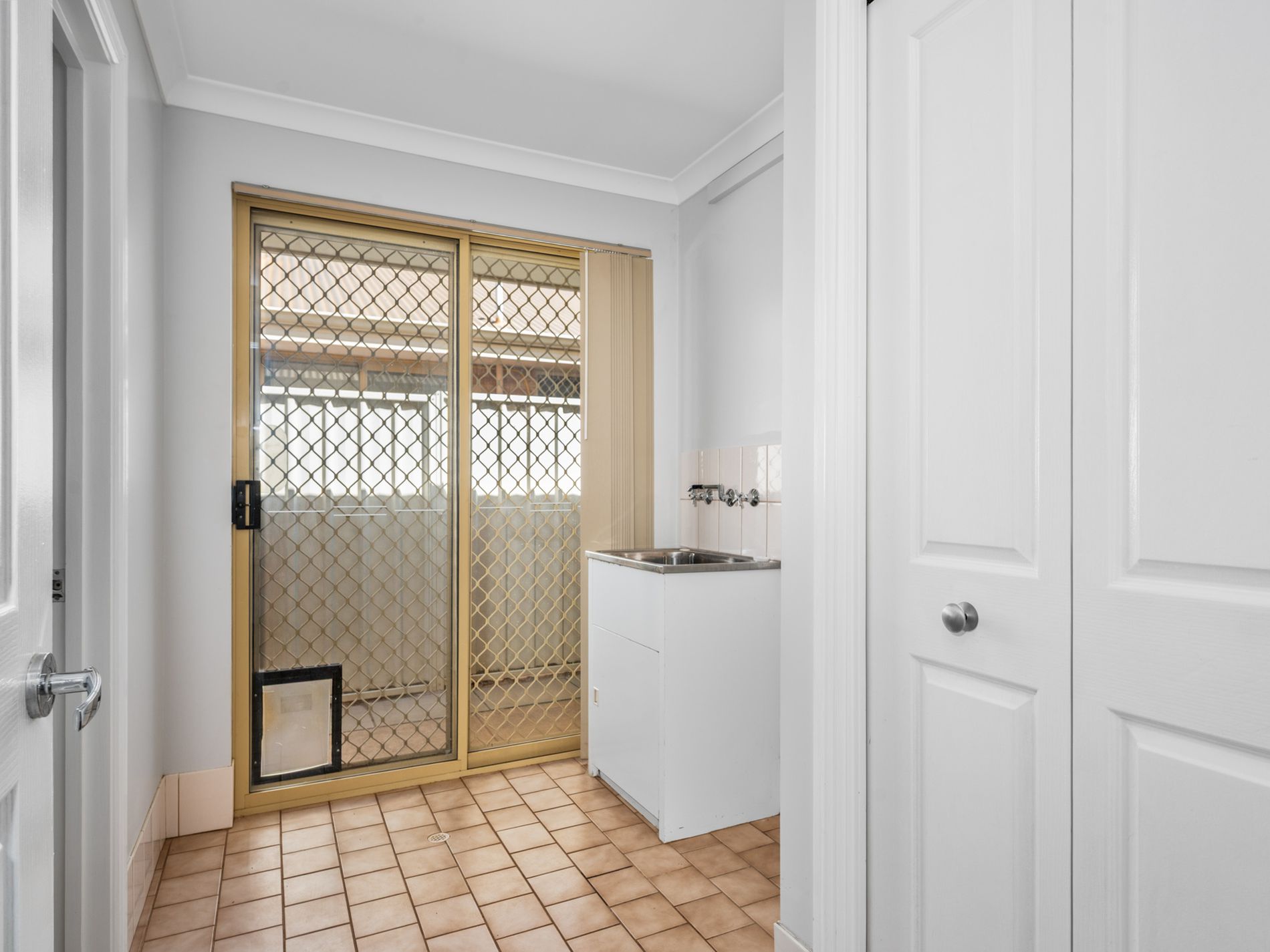The modern kitchen overlooks a light-filled open-plan living and dining area, creating a comfortable space for everyday living. The main bedroom includes a walk-in robe, while the two additional bedrooms are well-sized and feature built-in robes. The semi-ensuite bathroom provides convenience for the whole household.