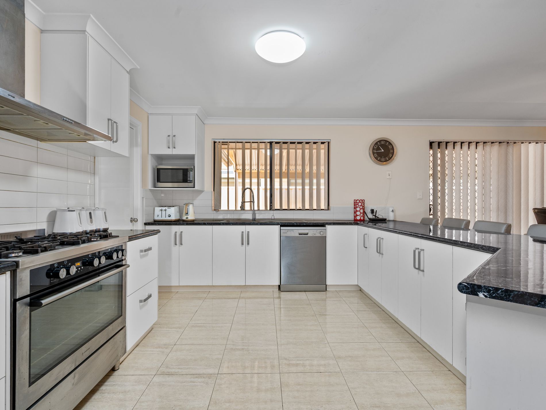 Step inside and you're welcomed by multiple living zones, including a formal lounge, separate dining, and a large tiled open plan kitchen, meals and family area. The kitchen is set to impress with stainless steel gas appliances, dishwasher, and loads of cupboard space.
