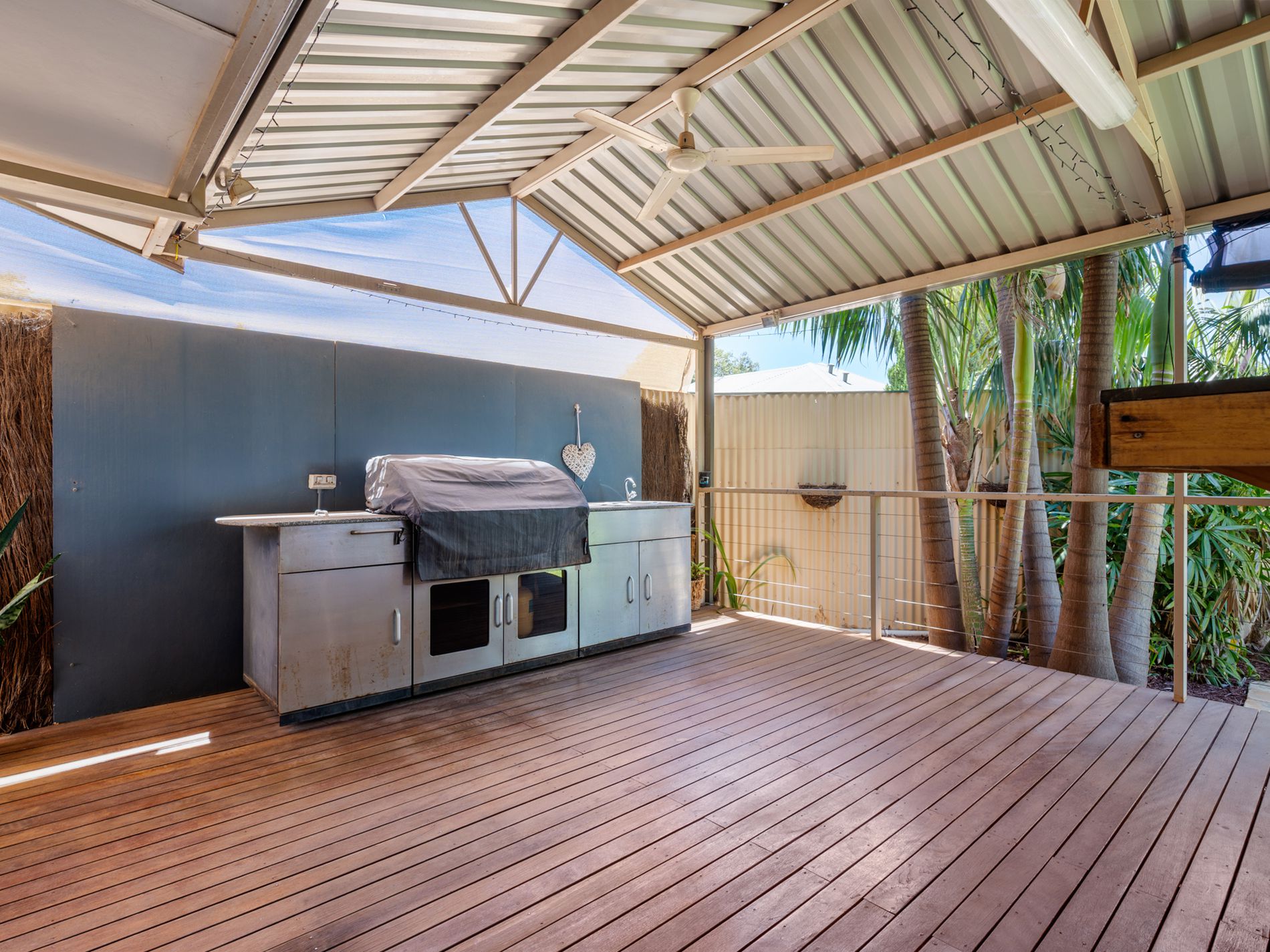 FEATURES INCLUDE: *Family Friendly / Low Maintenance 3x1 Home *Open Plan Floating Floorboard Floor Dining & Living *Separate Floating Floorboard Floor Kitchen *Gas Cooking *Gas Oven *R/M Evap A/C *BIR to Bedroom 1 & Bedroom 3 *Main Bathroom with Shower over Bath, an IXL & Vanity *Separate Toilet *Established Gardens *Large Outdoor Entertaining Area on Wooden Deck with Wooden Bar & Ceiling Fans *Garden Shed *Off Street Parking *Gas HWS *Gas Bottles *Pets Considered *Close to Shops, Schools & Parks.