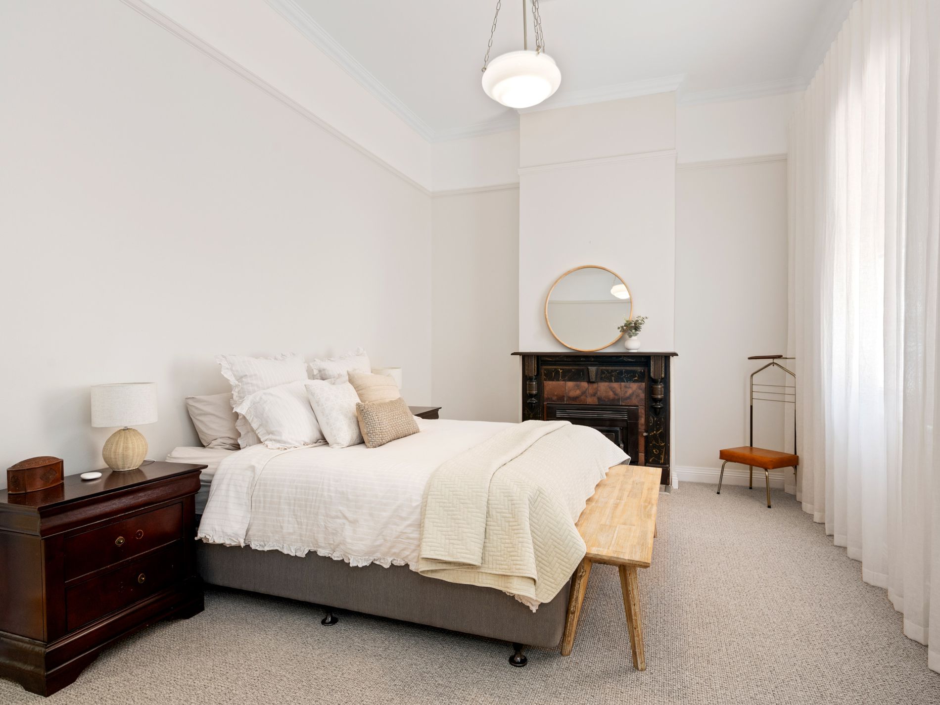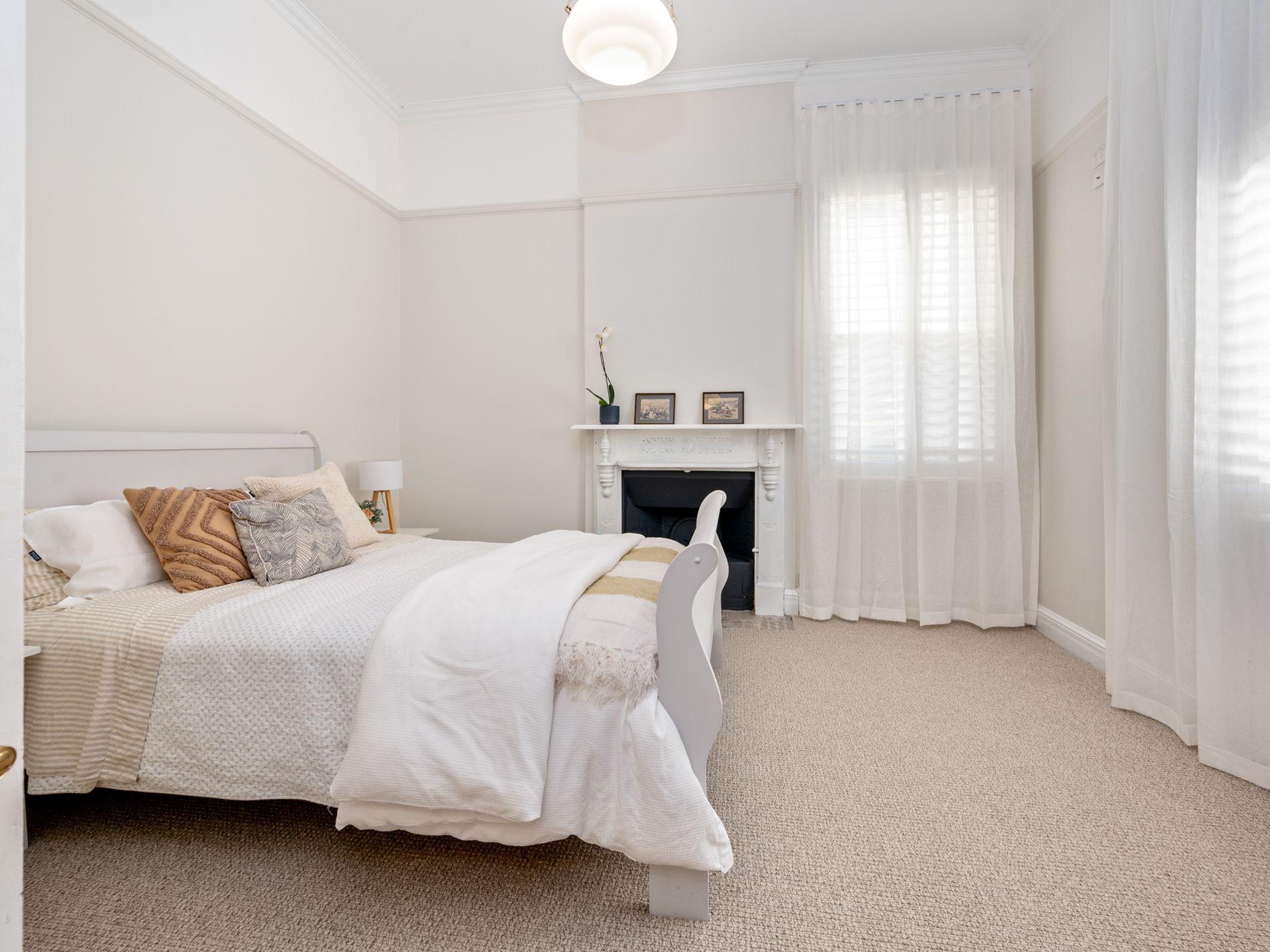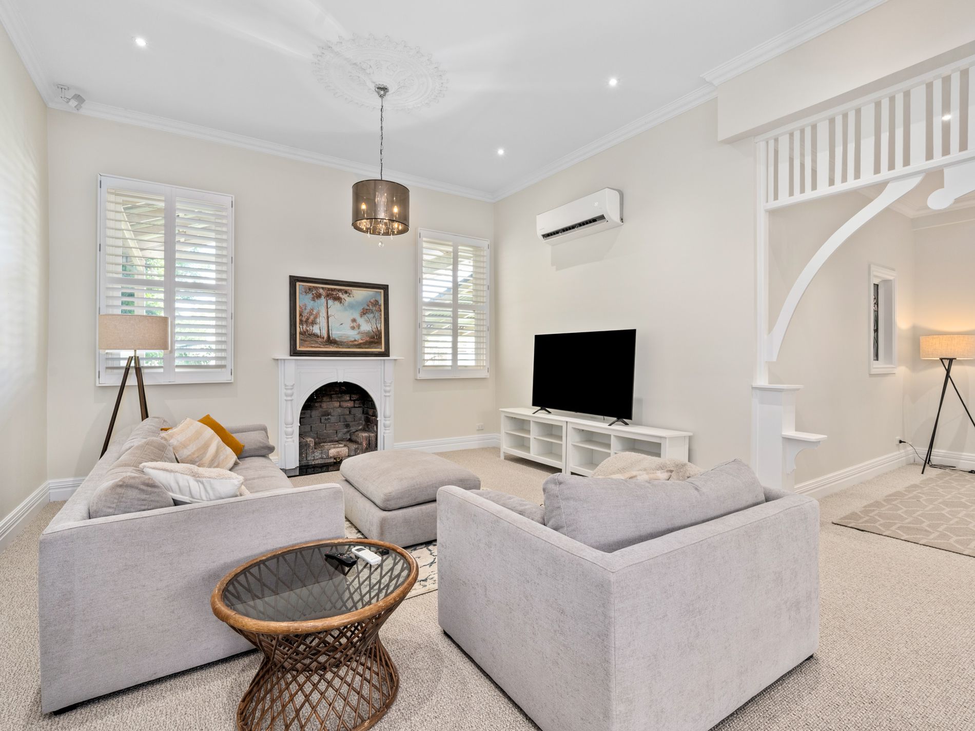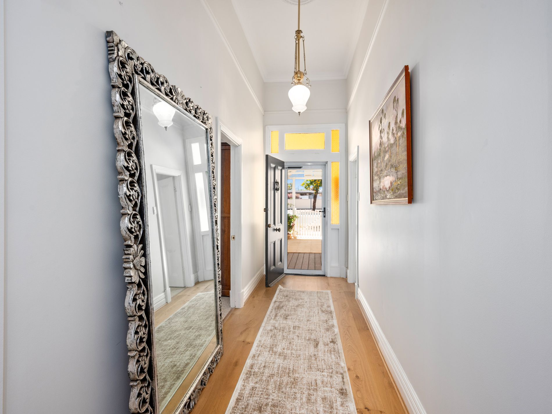 Behind the white picket fence, the grand entrance welcomes you with high ceilings, ornate features, and an elegant hallway that sets the tone for the rest of the home.