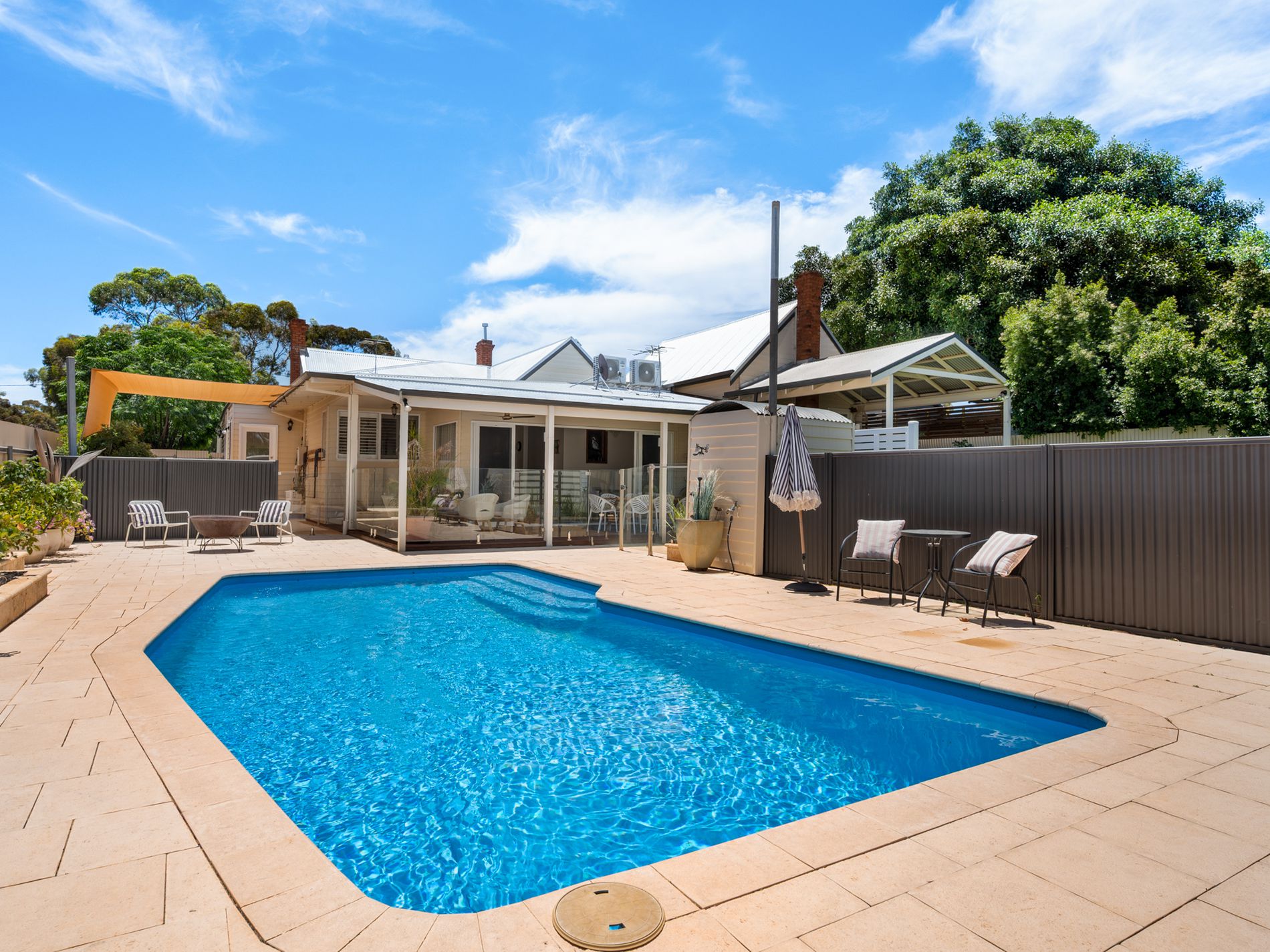 The light-filled family area opens onto a decked alfresco with built-in BBQ-the perfect place for long summer evenings overlooking the sparkling pool.
