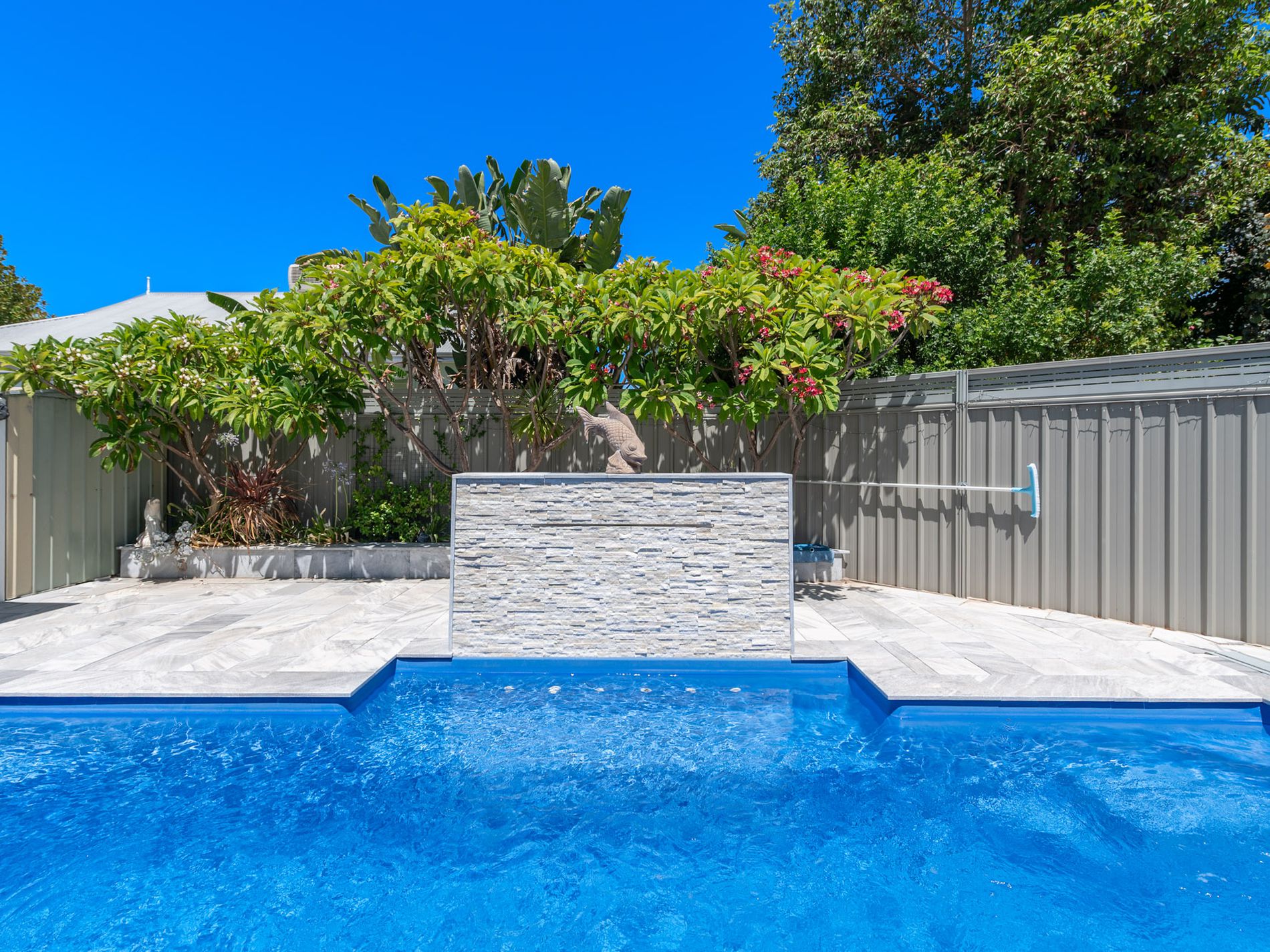 The gardens are fully reticulated and beautifully finished with limestone boundary walls, a lockable side access gate and seamless indoor-outdoor flow.