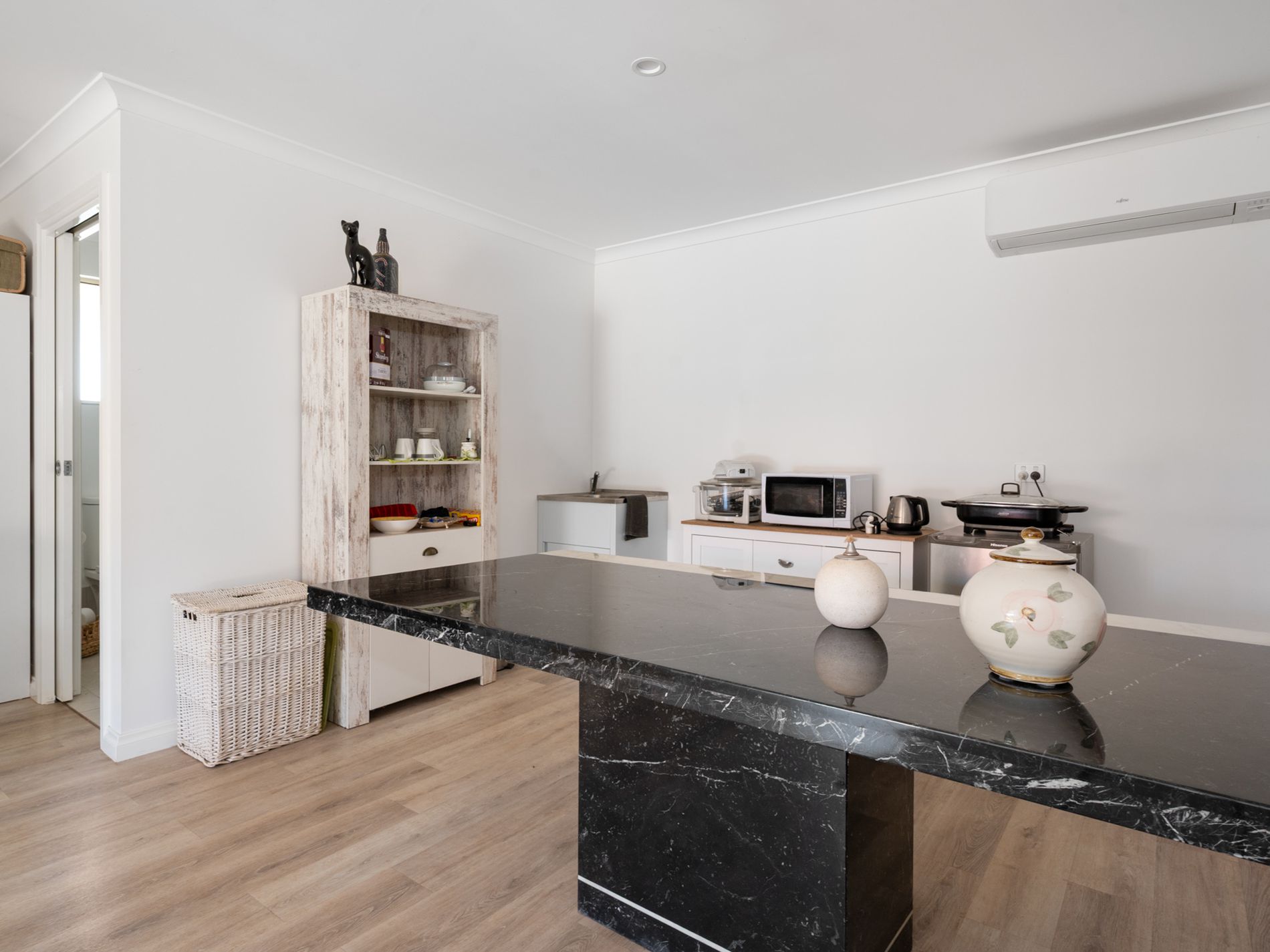 A standout bonus is the separate modern granny flat, offering its own bathroom with shower and toilet, a spacious layout, split system air conditioning, and a shady patio for relaxing. Perfect for extended family, guests, a teenager's retreat, or even a work-from-home space.
